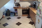 Im Flur, Wohn-, und Schlafbereich ist Laminat verlegt. Das Badezimmer sowie die Küche sind gefliest.