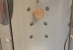 Die komfortable Duschkabine ist mit Massagedüsen ausgestattet.