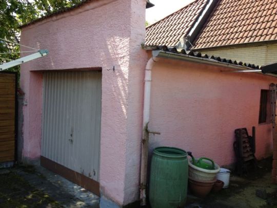 Eine Garage und ein Holzgartenhaus im hinteren Grundstücksbereich bieten genügend Platz für ein Fahrzeug, Fahrräder, Gartengeräte und kleiner Werkstatt.